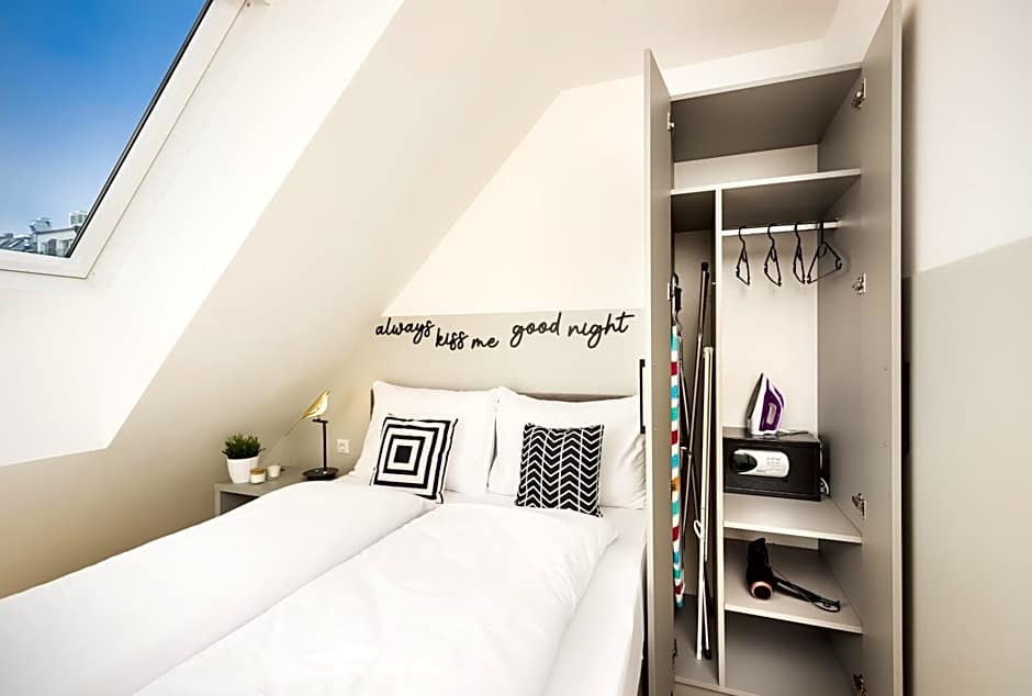 Featuring free toiletries, this double room includes a private bathroom with a shower and a hairdryer. The double room's kitchenette, which has a refrigerator, is available for cooking and storing food. The air-conditioned double room features a flat-screen TV with satellite channels, soundproof walls, a tea and coffee maker, a seating area as well as city views. The unit has 1 bed.